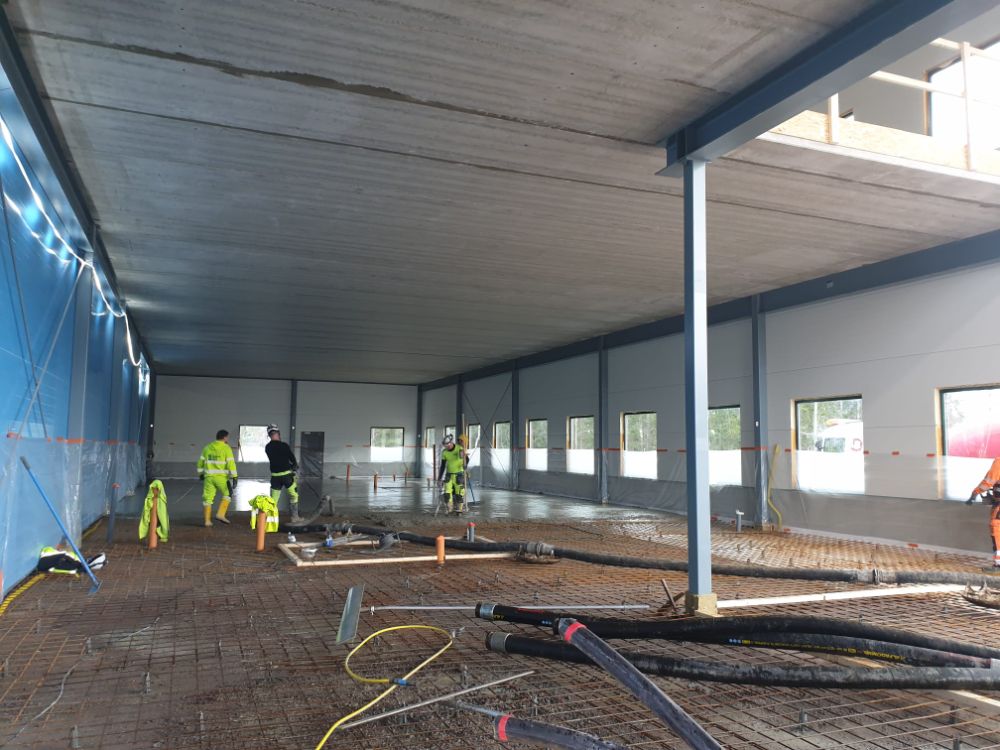 + Det går, vid ett senare tillfälle, gjuta plattan invändigt oavsett väder i säkra förhållanden när hallen är tät.