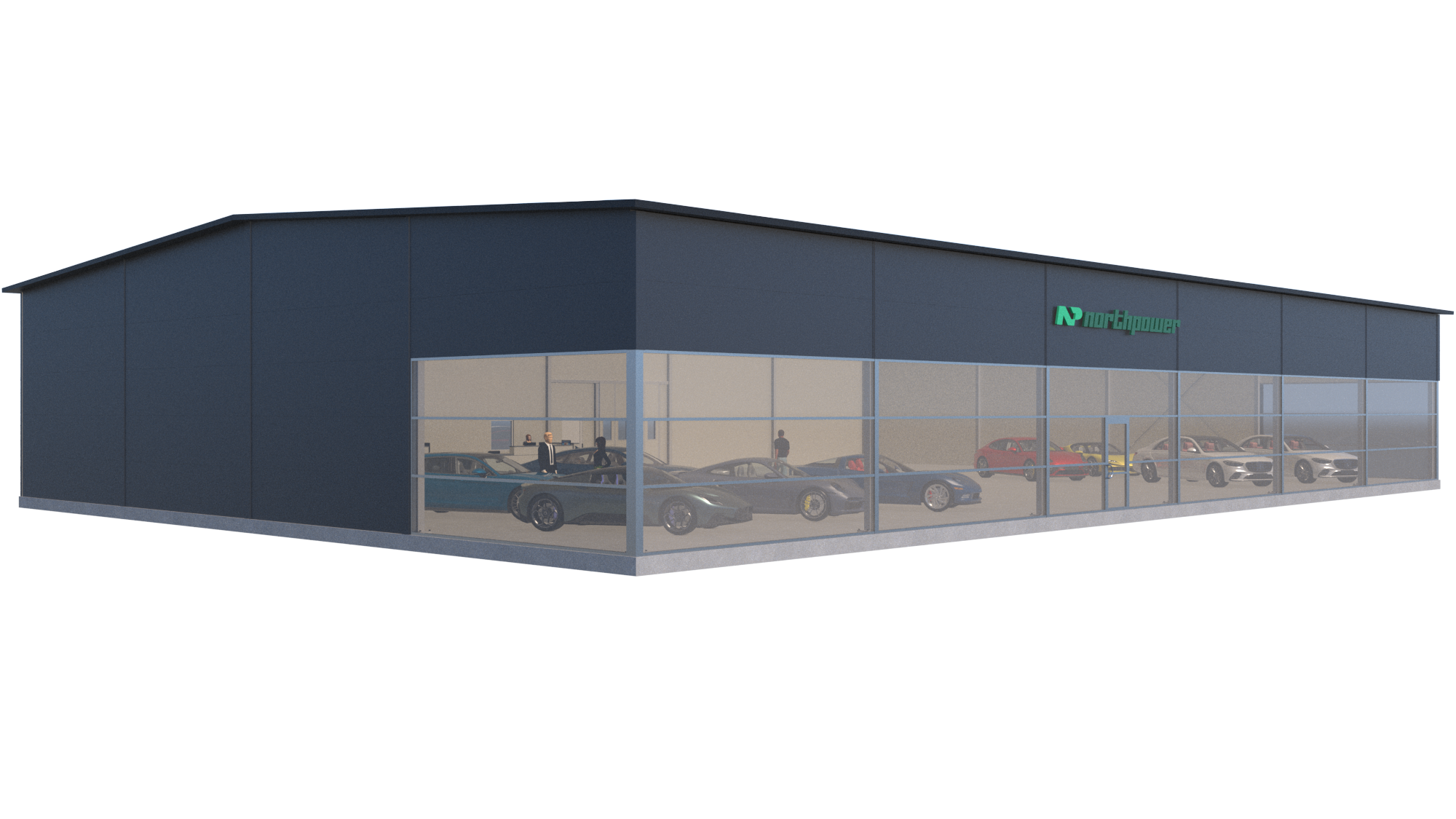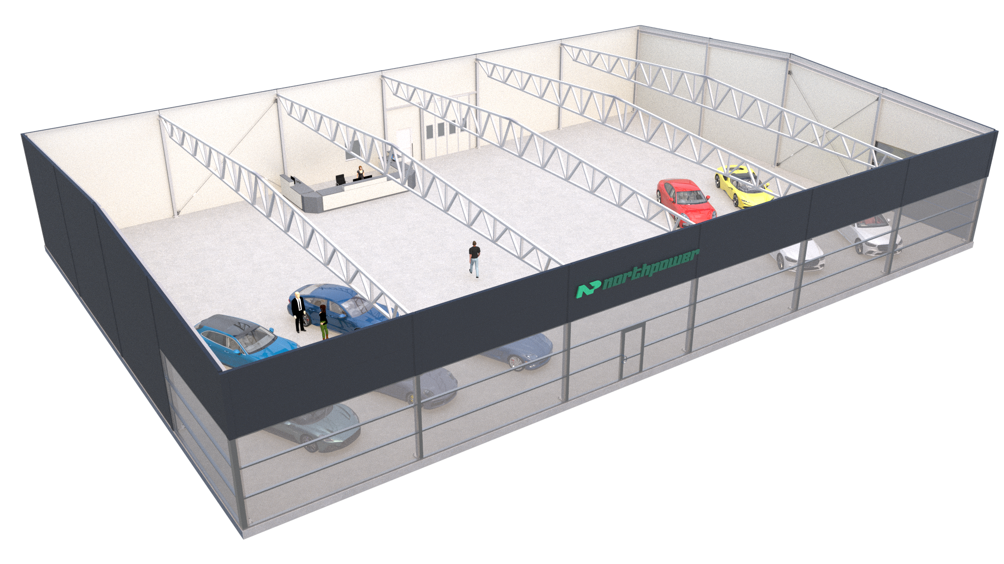 Observera att vårt koncept inte kan förknippas med en del andra aktörer som erbjuder hallar med lättviktsstomme. Detta är en riktig stålhall med riktig stålstomme och hög kvaliét på väggar, tak och detaljer.
