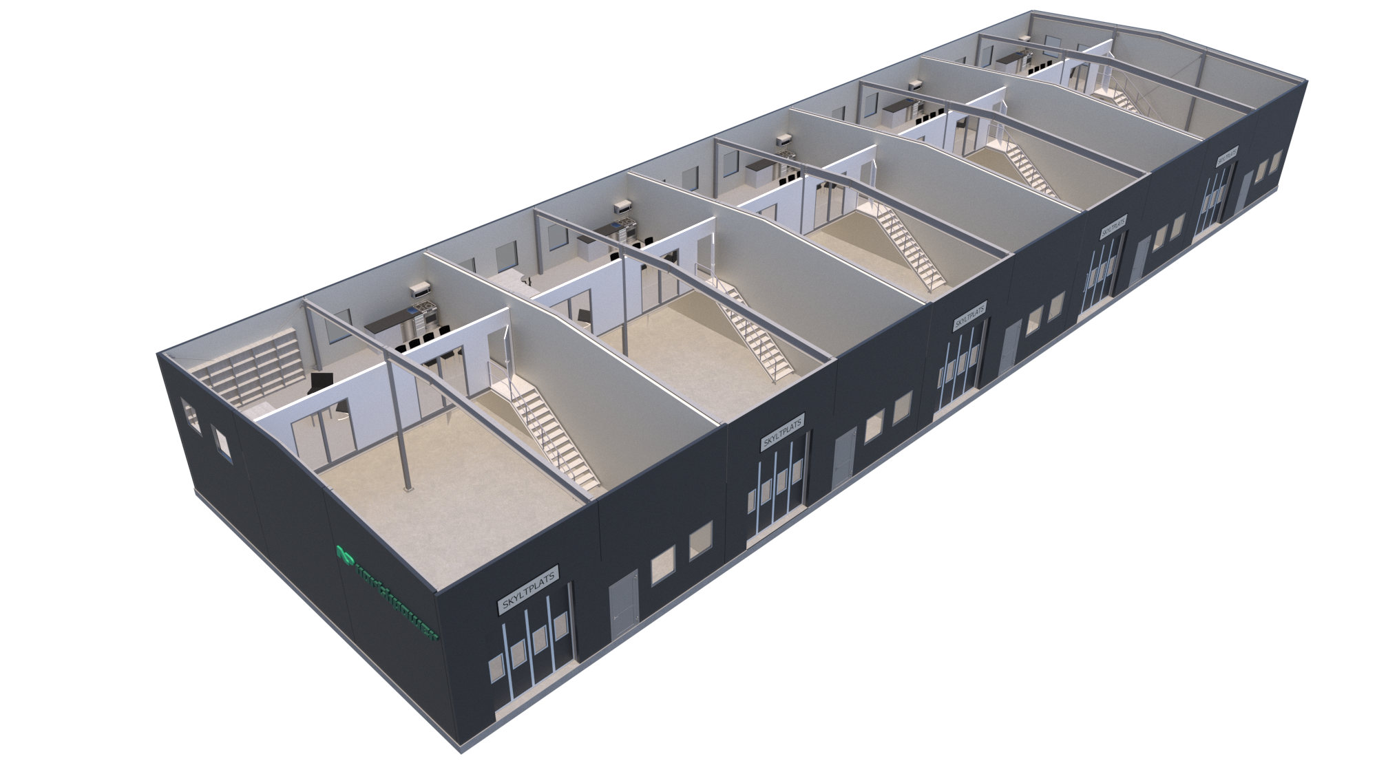 lättviktsstomme. Detta är en riktig stålhall med riktig stålstomme och hög kvalitet på väggar, tak och detaljer.