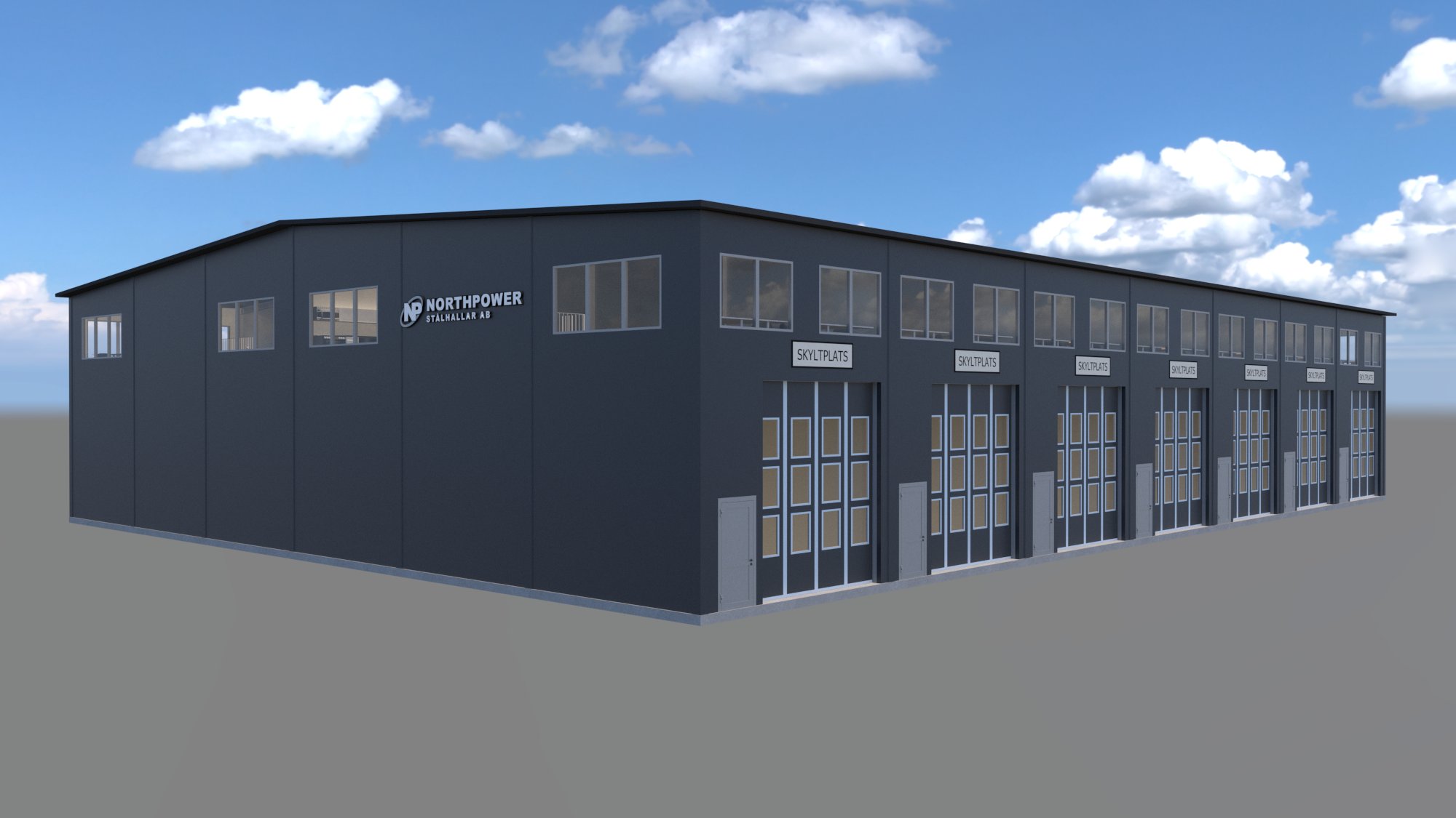 lättviktsstomme. Detta är en riktig stålhall med riktig stålstomme och hög kvalitet på väggar, tak och detaljer.